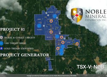 Read moreToronto, Ontario - TheNewswire - August 25, 2020 - Noble Mineral Exploration Inc. (“Noble” or the "Company") (TSXV:NOB) (FRANKFURT:NB7) (OTC:NLPXF) is pleased to announce that, it has executed an agreement with MacDonald Mines Exploration Ltd. (TSX-V: BMK) (“MacDonald”) to acquire all of MacDonald’s interest in the Holdsworth gold property (the “Property”), located 25 kilometres northeast of Wawa, Ontario in Corbiere...