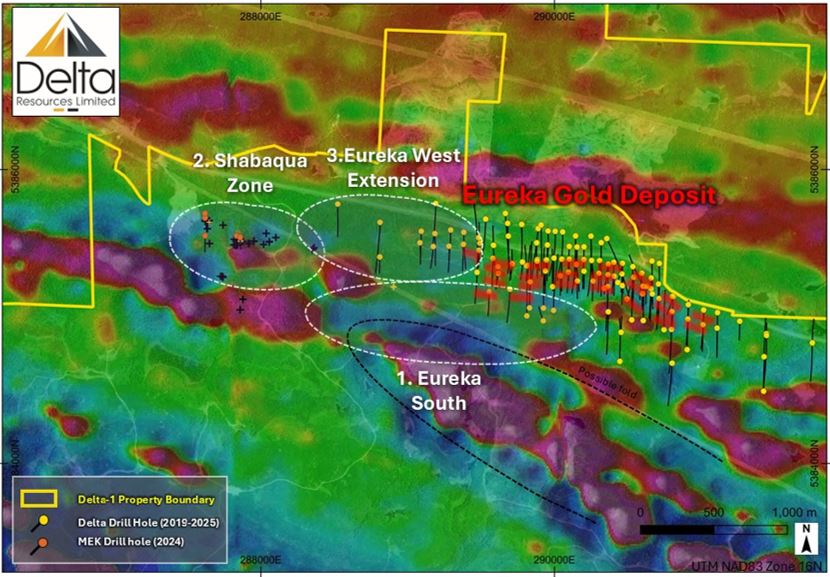 “With the drill turning once again at Delta-1, the Company is driving its flagship discovery forward while unlocking the broader potential of our 297 square kilometre land package. Delta is targeting additional high-grade zones along strike of the Eureka Gold Deposit and fast-tracking the path to economic development with a disciplined, business-driven approach.