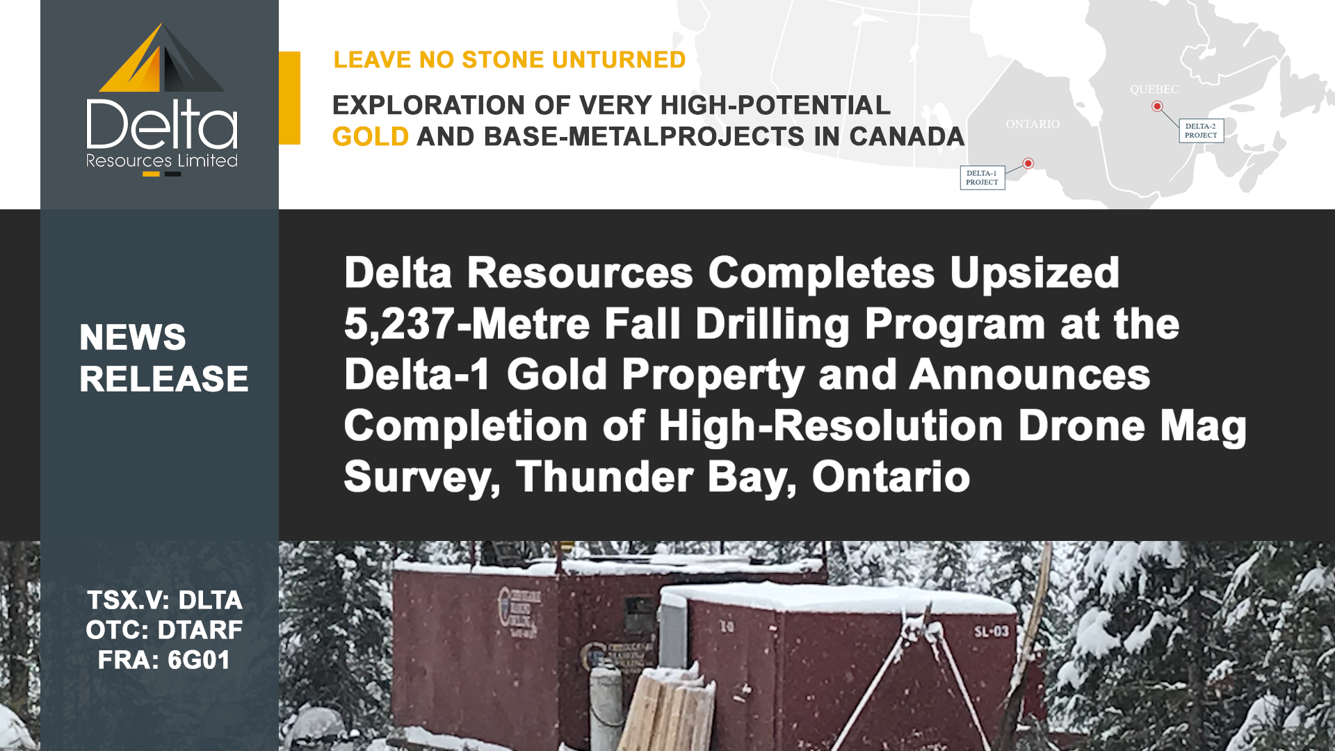 Delta Resources Completes Upsized 5,237-Metre Fall Drilling Program at the Delta-1 Gold Property and Announces Completion of High-Resolution Drone Mag Survey, Thunder Bay, Ontario