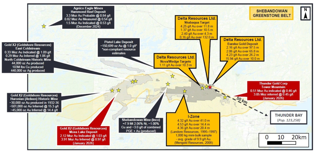 “Following the optioning of the Delta-2 property earlier this year for $8.25 million from Troilus Mining, the Company is now fully focused on advancing the Delta-1 Project and has developed a refined and exciting exploration strategy for 2026. The plan emphasizes disciplined capital allocation and extensive fieldwork in the I-Zone / Crayfish Creek Fault sector, aimed at defining targets that demonstrate the strongest geological potential for drilling later in the season. We also anticipate further in-fill and step-out drilling around the Eureka Gold Discovery and at Shabaqua with the goal of delivering a maiden NI 43-101 Mineral Resource Estimate later in the year.