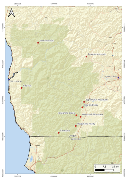 The Rough and Ready Property is located 4 km west of the small town of O’Brien in Southern Oregon and is accessed by local roads and trails (see Figure 1 for a map of all Homeland properties).