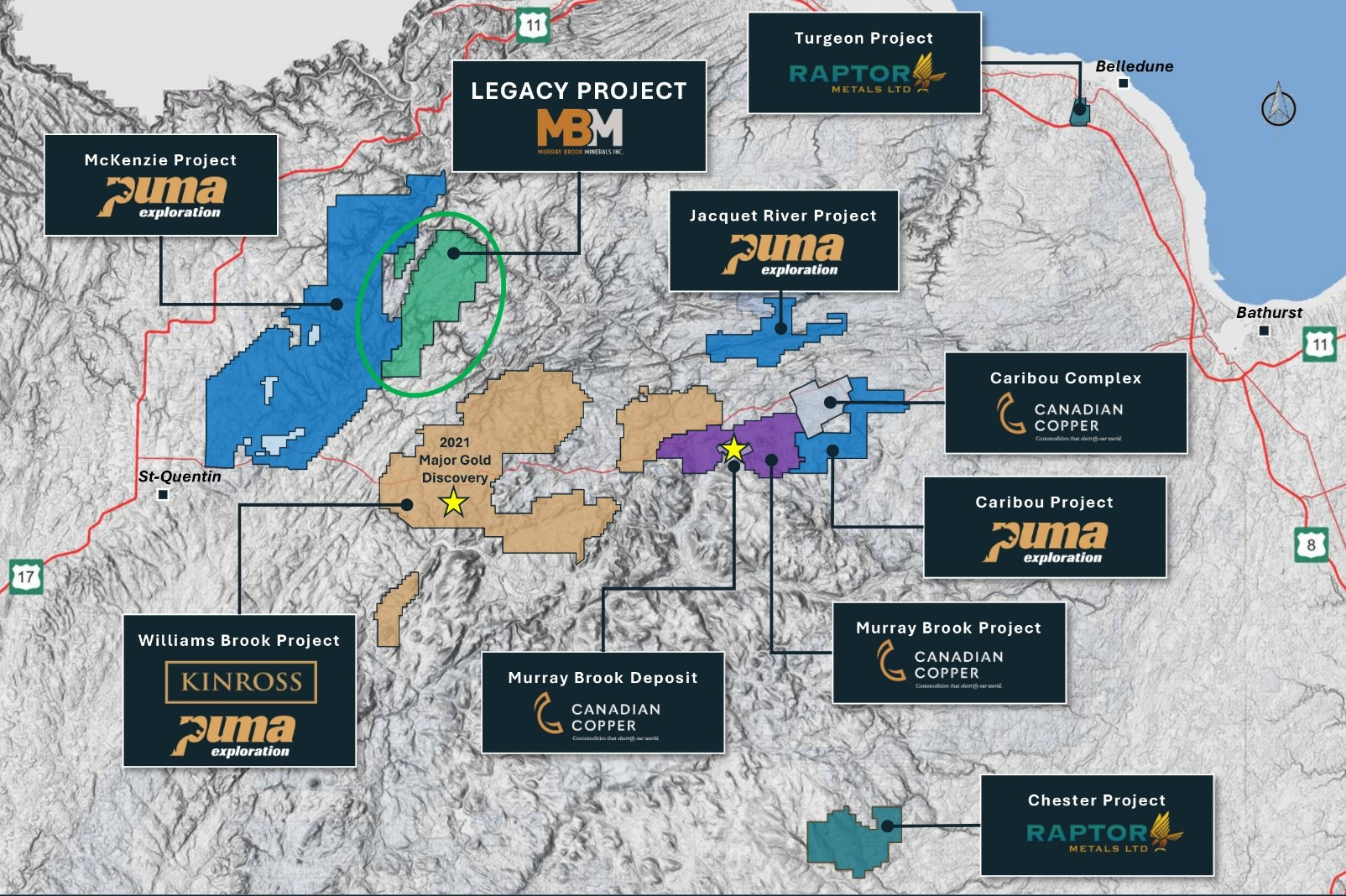 Murray Brook Minerals Inc. is a private Canadian mineral exploration company advancing its 100%-owned Legacy Project, a copper-silver project with gold potential located in Restigouche County, Northern New Brunswick, Canada. Puma Exploration owns 71.6% of MBM.