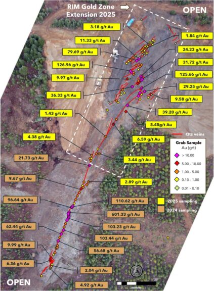 Figure 2. High-grade gold sampling at RIM Gold Zone