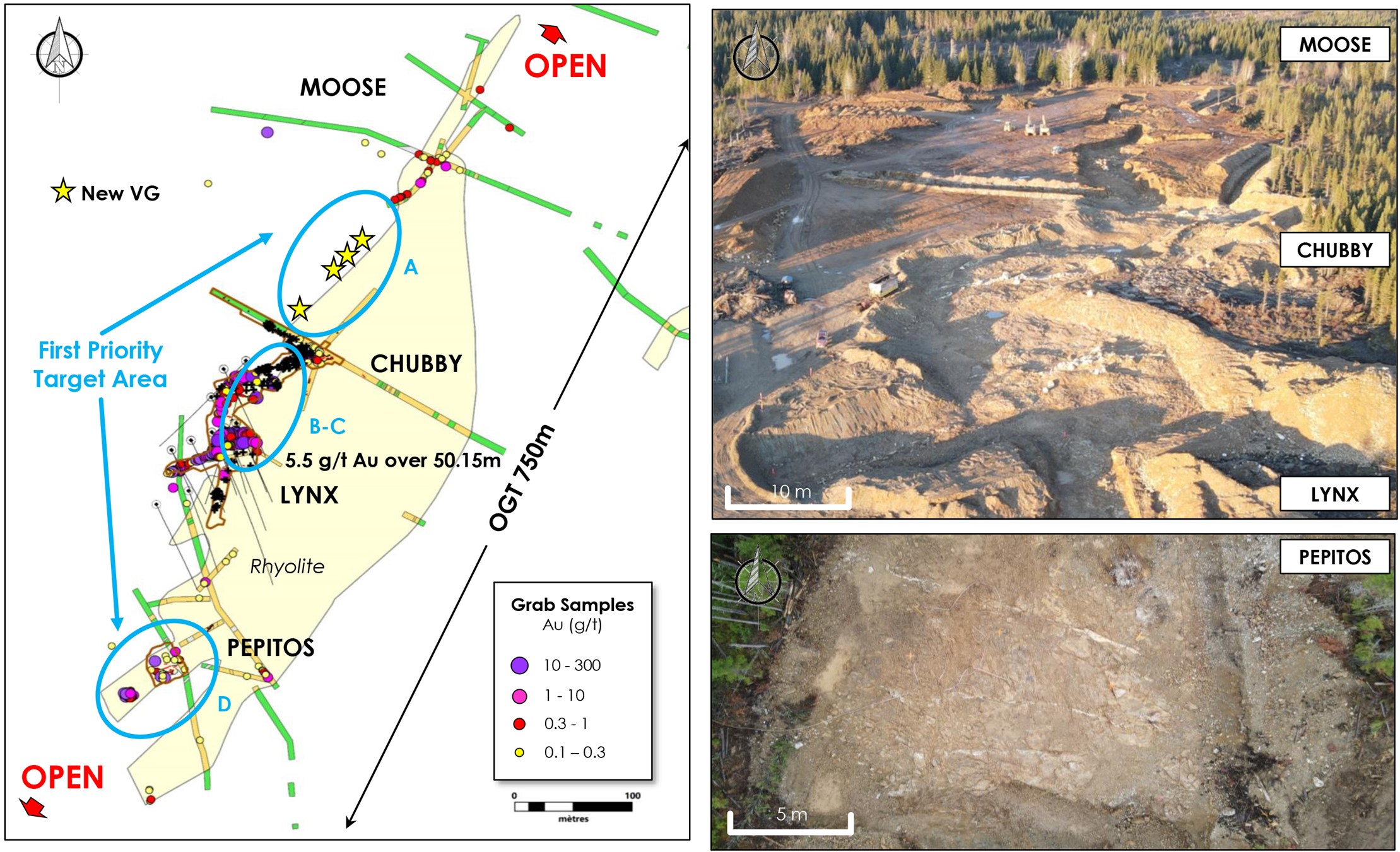 The 2022 exploration program will strategically target three (3) project areas, each with specific tasks and objectives (see Figure 1). The program may be adjusted as the assay results from over 750 samples collected during the Fall 2021 surface exploration program, including the surface grab samples with visible gold (“VG”) collected in the Chubby-Moose area, are received in the coming weeks.