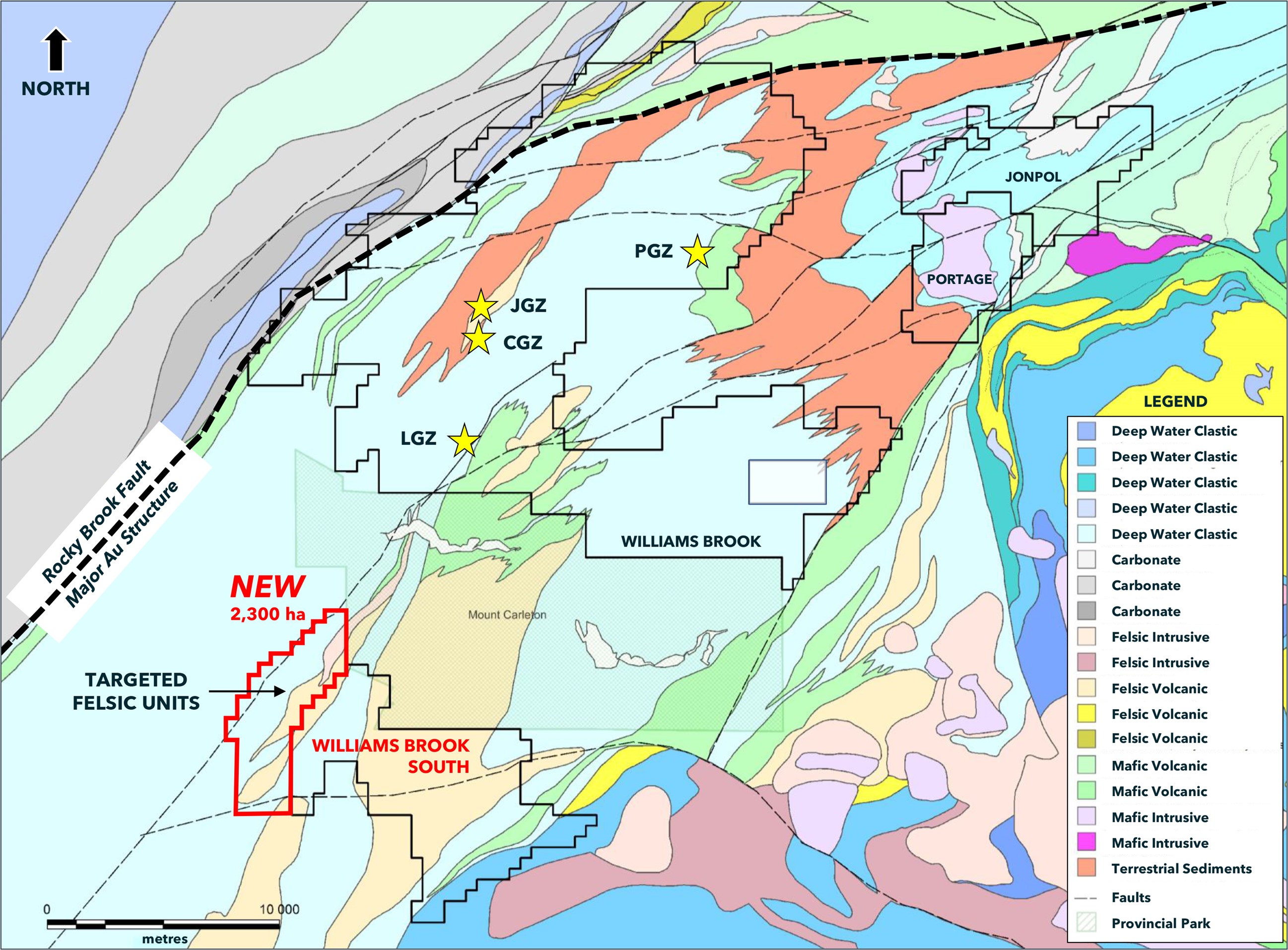 Figure 2: Felsic volcanic units covered by the new claims