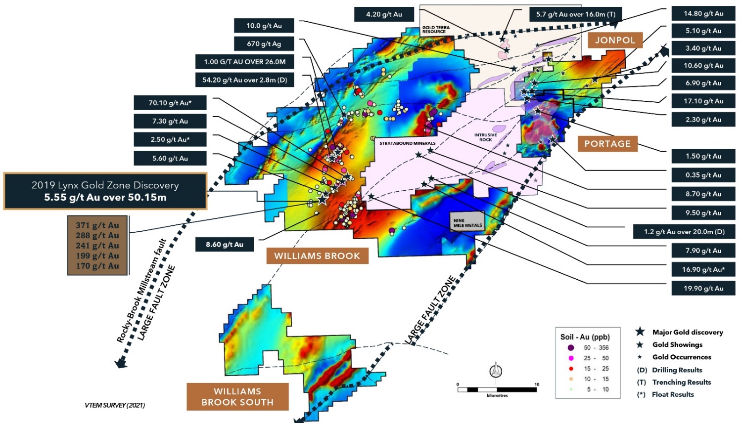 Dr. Gregg Morrison, a leading expert on intrusion-related, porphyry and epithermal gold systems, has reviewed the geology and classified rock and core samples of the Lynx Gold Zone for their texture, mineralogy, and multi-element geochemistry. He stated: “I believe Williams Brook is part of the same family of gold systems as Fosterville and Sunday Creek in Australia and Valentine Lake in Newfoundland. These other deposits are known for their structure-controlled mineralization, metal zoning, free gold in bonanza shoots and kilometre scale depth extent. The similarities to these more comprehensively explored deposits gives real confidence to deeper drilling in the Lynx Zone and continued exploration around the feeder structures in the Williams Brook District’’.