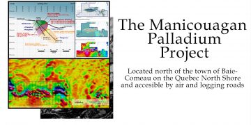 The Manicouagan Platinum-Palladium Project consists of 115 claims covering 61 km2 and is located approximately 70 km north of the Manicouagan Crater and 350 km northwest of the city of Baie-Comeau, in the province of Quebec. The property can be accessed via Camp Helene by air from either Baie-Comeau or Gagnonville’s paved airstrip. Gagnonville is … Continue reading St-Georges Eco-Mining – The Manicouagan Palladium Project
